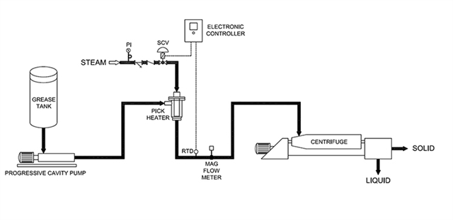 图1:该油脂处理系统集成了离心机与直接蒸汽喷射(dsi)加热器。